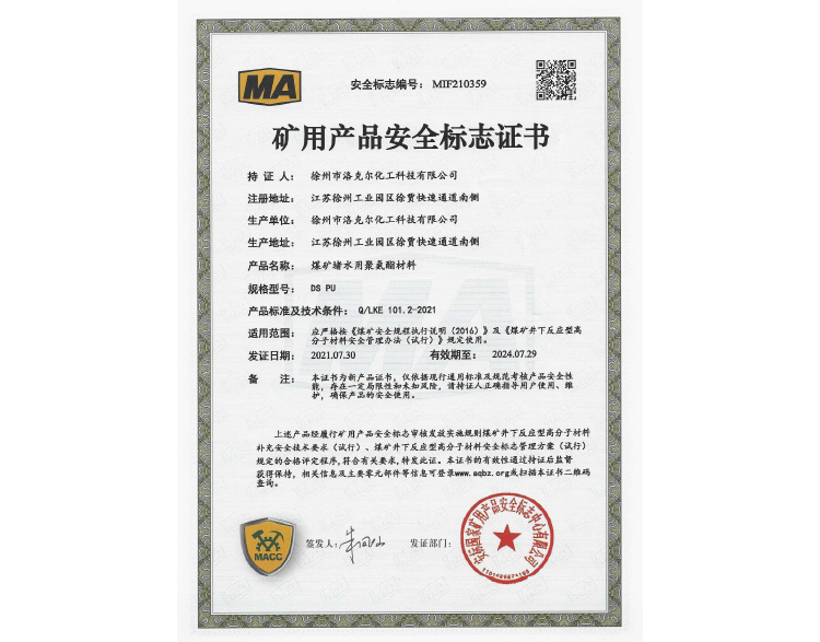 以發展創新煤礦安全技術為目標,專業提供礦用聚合材料